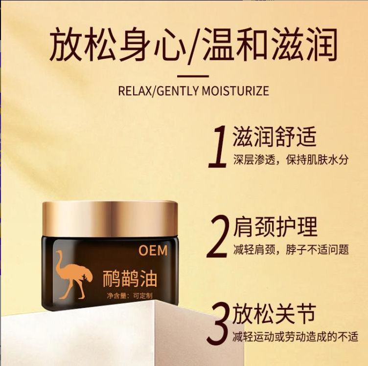 貼牌代工鴯鹋油鴕鳥油關(guān)節(jié)疼痛舒絡(luò)筋骨按摩膏oem