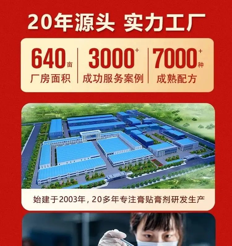 | 補(bǔ)充說明 | 注意事項(xiàng):1市場(chǎng)大:膏藥的空白市場(chǎng)很大, 消費(fèi)群體廣大。每個(gè)人都可能用到膏藥,并且有嚴(yán)格的區(qū)域保護(hù)。 2經(jīng)營(yíng)活:可以自己在電商、微信上賣,可以做直播、短視頻,也可以和各大醫(yī)院、藥店、美容店合作。 3品種多:膏藥有:骨科、兒科、婦科、癥狀類等;瘖y品有面膜、精華液、水乳霜、彩妝、套盒、洗沐護(hù)等。 4操作易:專業(yè)的客服團(tuán)隊(duì)每月定期回訪,根據(jù)不同市場(chǎng)提供指導(dǎo)、培訓(xùn)、廣告、促銷活動(dòng)支持! 貯藏:干燥陰涼 禁忌:無 保質(zhì)期:兩年 備注:1、優(yōu)質(zhì)服務(wù):專業(yè)OEM服務(wù)團(tuán)隊(duì)一對(duì)一服務(wù),從設(shè)計(jì)到出貨全程專人跟進(jìn)。 2、出貨迅速:包裝定稿,專業(yè)生產(chǎn)團(tuán)隊(duì)可在10—15天內(nèi)交付發(fā)貨。 3、質(zhì)量**:從生產(chǎn)至出廠五道質(zhì)檢嚴(yán)格把關(guān),全自動(dòng)四邊封口機(jī)器密封性更好,產(chǎn)品更美觀 4、權(quán)威認(rèn)證:一類醫(yī)療器械文號(hào),可查,十萬級(jí)凈化標(biāo)準(zhǔn)生產(chǎn)車間,品質(zhì)有**。 5、經(jīng)驗(yàn)豐富:20年生產(chǎn)加工經(jīng)驗(yàn),已為上百個(gè)品牌提供服務(wù),產(chǎn)品已出口多個(gè)國(guó)家和地區(qū)。 6、產(chǎn)量充足:現(xiàn)代化生產(chǎn)車間、進(jìn)口全自動(dòng)生產(chǎn)線,日產(chǎn)量100萬片。 7、品類齊全:300多款成熟配方(妝字號(hào)、械字號(hào)、消字號(hào))免費(fèi)打樣 |