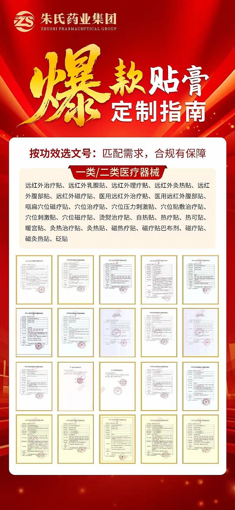 | 補充說明 | 注意事項:1市場大:膏藥的空白市場很大, 消費群體廣大。每個人都可能用到膏藥,并且有嚴格的區(qū)域保護。 2經營活:可以自己在電商、微信上賣,可以做直播、短視頻,也可以和各大醫(yī)院、藥店、美容店合作。 3品種多:膏藥有:骨科、兒科、婦科、癥狀類等。化妝品有面膜、精華液、水乳霜、彩妝、套盒、洗沐護等。 4操作易:專業(yè)的客服團隊每月定期回訪,根據(jù)不同市場提供指導、培訓、廣告、促銷活動支持! 貯藏:干燥陰涼 禁忌:無 保質期:兩年 備注:1、優(yōu)質服務:專業(yè)OEM服務團隊一對一服務,從設計到出貨全程專人跟進。 2、出貨迅速:包裝定稿,專業(yè)生產團隊可在10—15天內交付發(fā)貨。 3、質量**:從生產至出廠五道質檢嚴格把關,全自動四邊封口機器密封性更好,產品更美觀 4、權威認證:國家FDA認證的一類醫(yī)療器械文號,藥監(jiān)局可查,十萬級凈化標準生產車間,品質有**。 5、經驗豐富:20年生產加工經驗,已為上百個品牌提供服務,產品已出口多個國家和地區(qū)。 6、產量充足:現(xiàn)代化生產車間、進口全自動生產線,日產量100萬片。 7、品類齊全:300多款成熟配方(妝字號、械字號、消字號)免費打樣 |