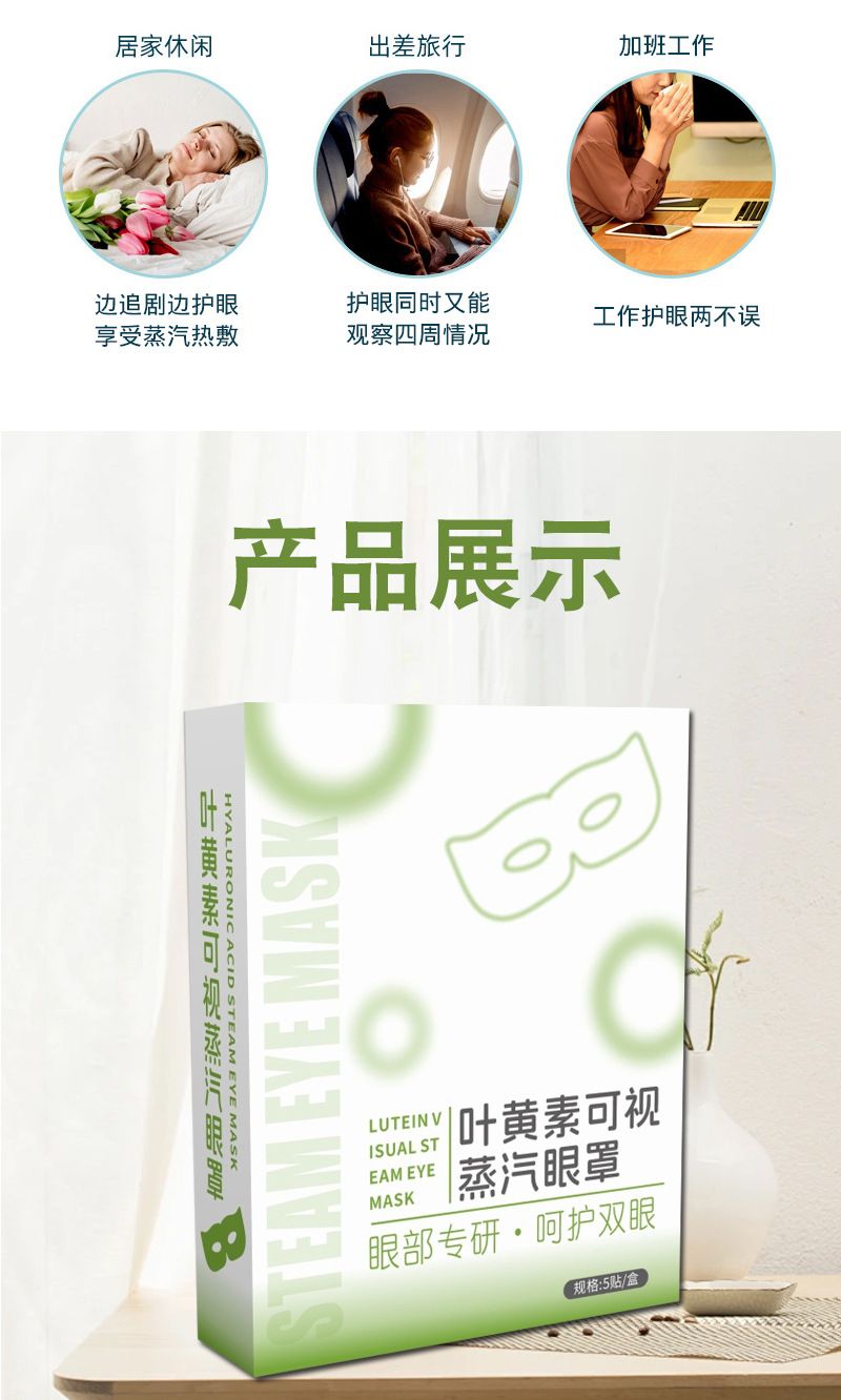 | 產(chǎn)品用途 | 玻尿酸可視蒸汽眼罩一次性熱敷緩解疲勞眼罩眼睛干澀 |