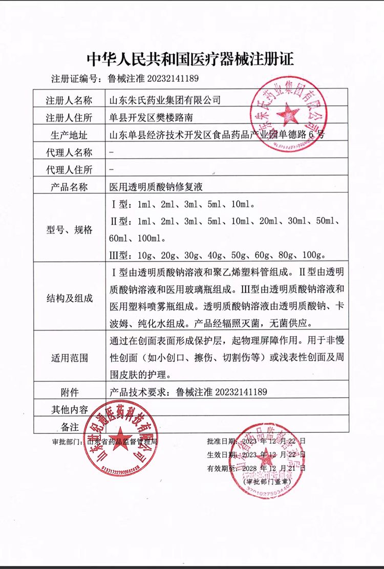 產(chǎn)品名稱: 醫(yī)用透明質(zhì)酸鈉修復(fù)液