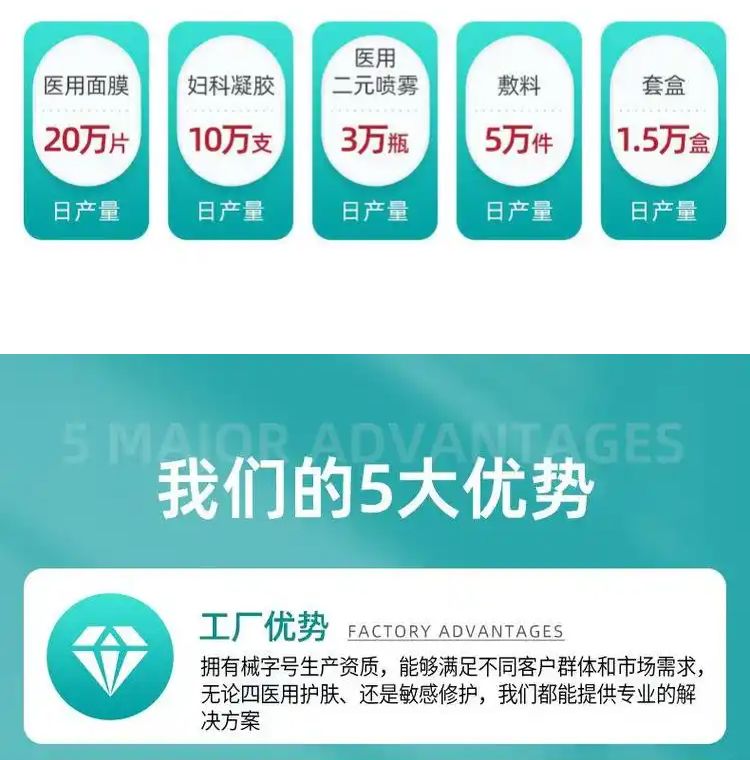 | 補(bǔ)充說明 | 貯藏:干燥陰涼 禁忌:無 保質(zhì)期:兩年 備注:1、優(yōu)質(zhì)服務(wù):專業(yè)OEM服務(wù)團(tuán)隊一對一服務(wù),從設(shè)計到出貨全程專人跟進(jìn)。 2、出貨迅速:包裝定稿,專業(yè)生產(chǎn)團(tuán)隊可在10—15天內(nèi)交付發(fā)貨。 3、質(zhì)量**:從生產(chǎn)至出廠五道質(zhì)檢嚴(yán)格把關(guān),全自動四邊封口機(jī)器密封性更好,產(chǎn)品更美觀 4、權(quán)威認(rèn)證:國家FDA認(rèn)證的一類醫(yī)療器械文號,藥監(jiān)局可查,十萬級凈化標(biāo)準(zhǔn)生產(chǎn)車間,品質(zhì)有**。 5、經(jīng)驗豐富:20年生產(chǎn)加工經(jīng)驗,已為上百個品牌提供服務(wù),產(chǎn)品已出口多個國家和地區(qū)。 6、產(chǎn)量充足:現(xiàn)代化生產(chǎn)車間、進(jìn)口全自動生產(chǎn)線,日產(chǎn)量100萬片。 7、品類齊全:300多款成熟配方(妝字號、械字號、消字號)免費(fèi)打樣 |