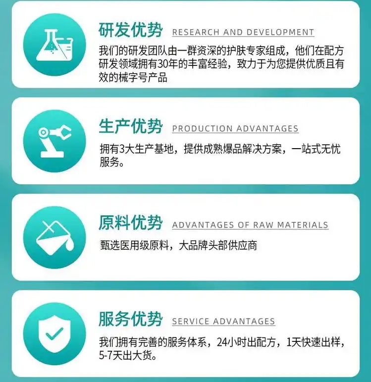 7、品類齊全:300多款成熟配方(妝字號、械字號、消字號)免費(fèi)打樣