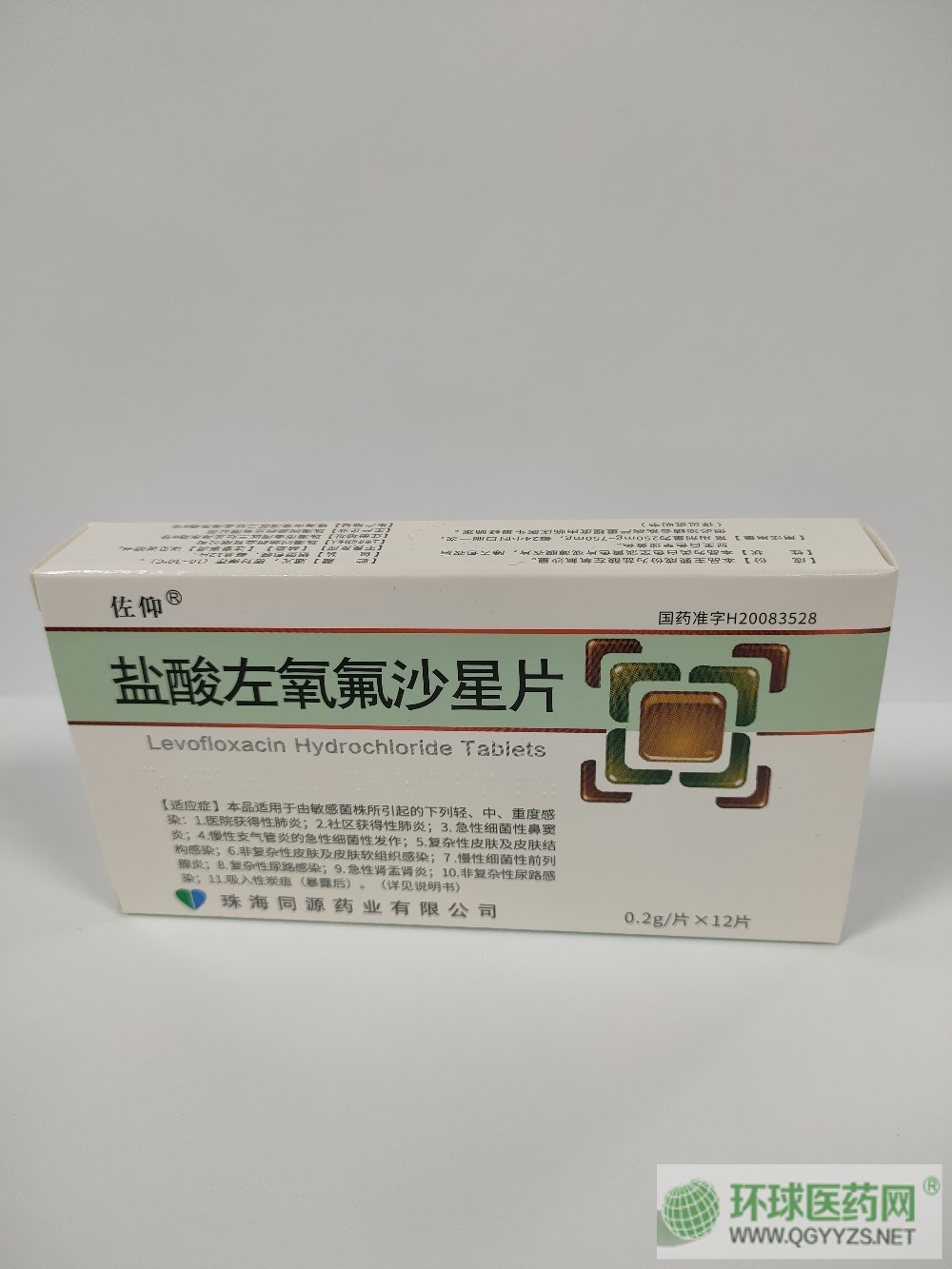 鹽酸左氧氟沙星為喹諾酮類抗菌藥物,抗菌譜廣。 |
