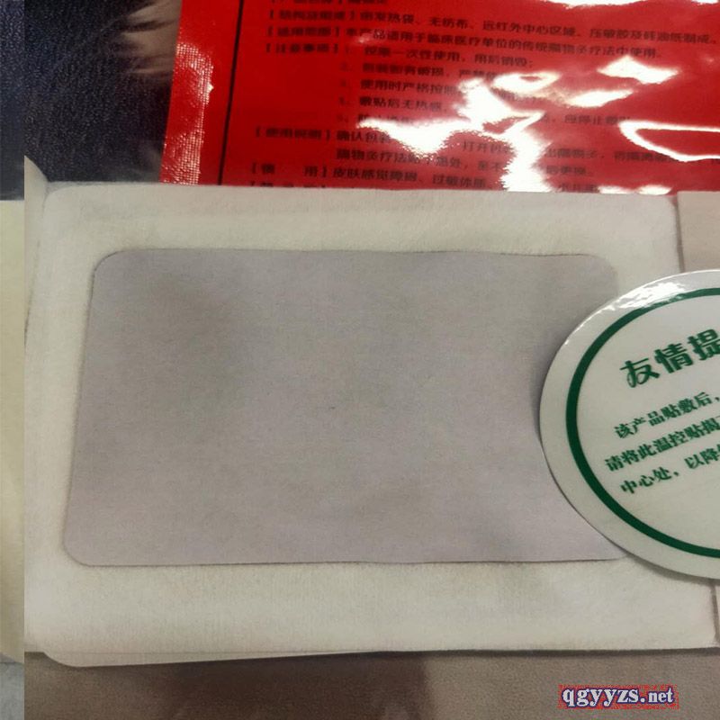 | 使用方法 | 打開包裝袋,取出隔物灸后撕去兩邊膠貼保護(hù)紙,將隔物灸貼在人體相關(guān)穴位上即可。對膠貼過敏者,可將隔物灸正面對準(zhǔn)穴位,反貼在緊身衣上即可。 |