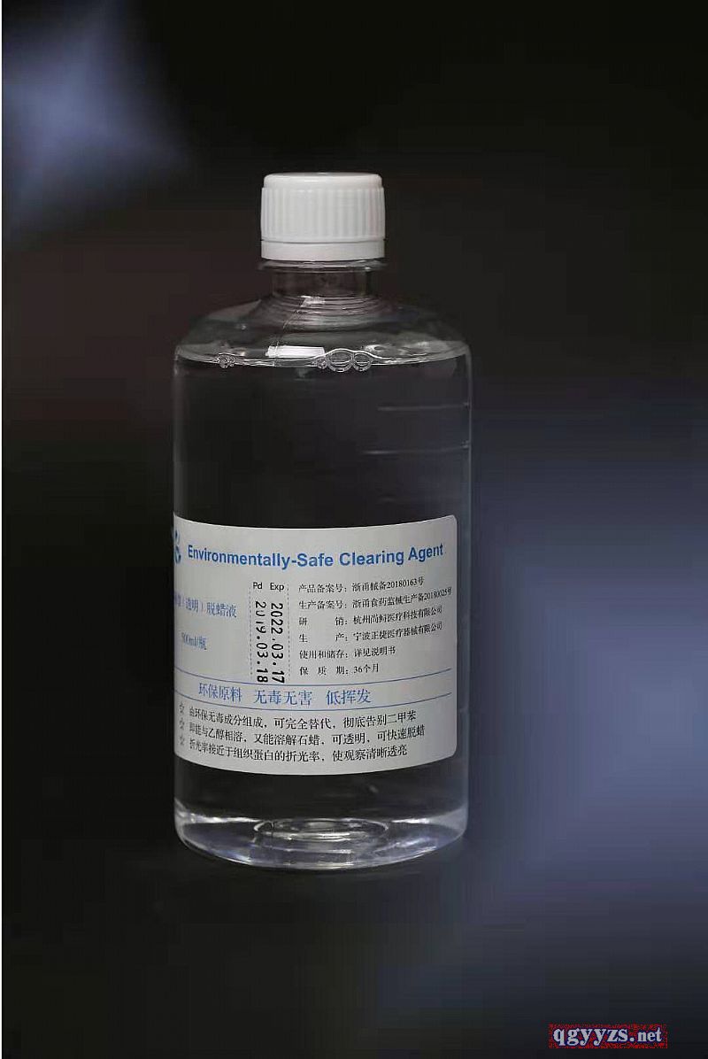 作用機(jī)理 本產(chǎn)品用于病理樣本透明,其作用機(jī)理是組織塊中的水分被透明脫蠟液取代,其折射指數(shù)接近于組織蛋白的折射指數(shù),組織塊變得透亮;用于樣本脫蠟時(shí),其機(jī)理是透明脫蠟液對(duì)石蠟有一定的溶解度,浸泡過(guò)程中脫蠟液逐步替換出組織內(nèi)的石蠟,使組織切片可以進(jìn)一步水化染色。