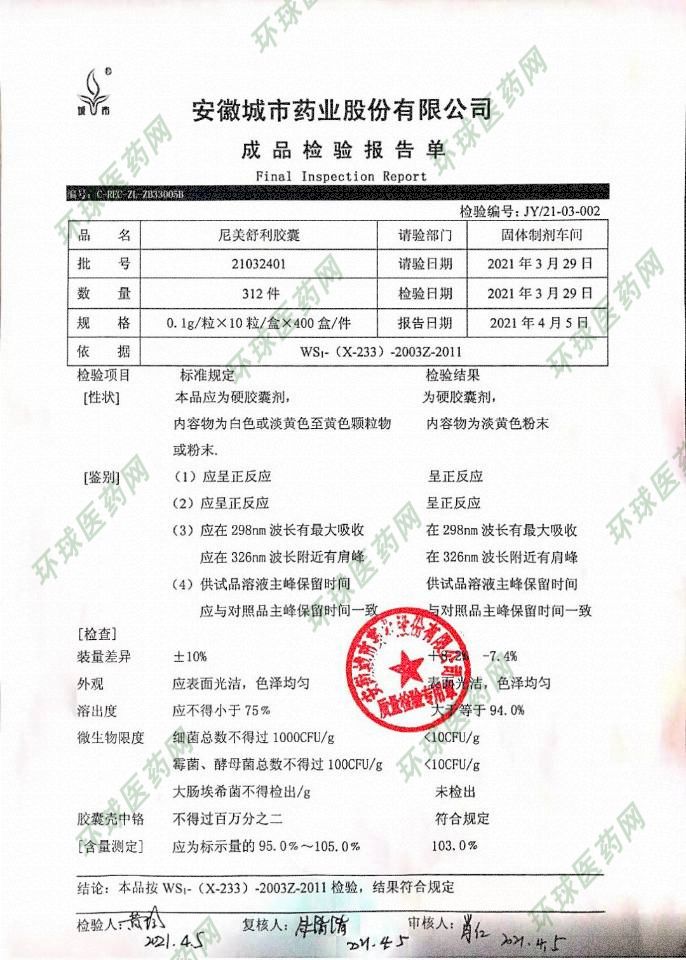 英文名稱:NimesulideCapsules