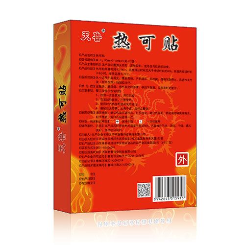 | 主要成分 | 熱可貼有內裝物和外袋組成,外袋由敷膜無紡布和含有壓敏膠的無紡布及硅油紙制成 |