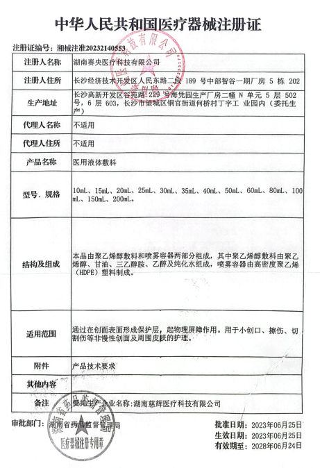 | 產(chǎn)品名稱 | 醫(yī)用液體敷料 |