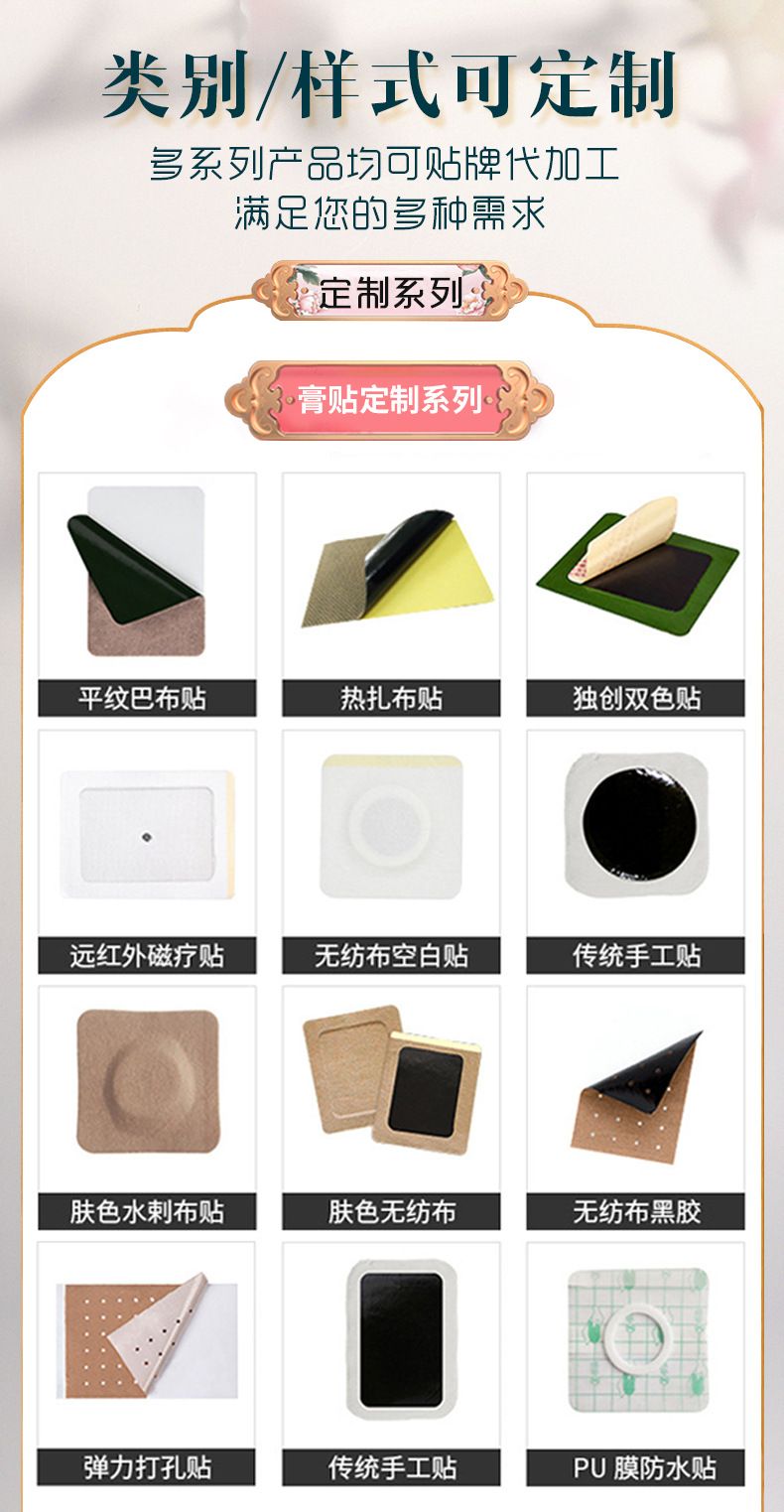 | 產(chǎn)品賣點(diǎn) | 貼牌加工生姜貼發(fā)熱貼艾灸貼等,批文申報(bào)、包裝設(shè)計(jì)、研發(fā)咨詢、加工、定制生產(chǎn)、包裝設(shè)計(jì)、商標(biāo)注冊等一系列OEM/ODM服務(wù) |