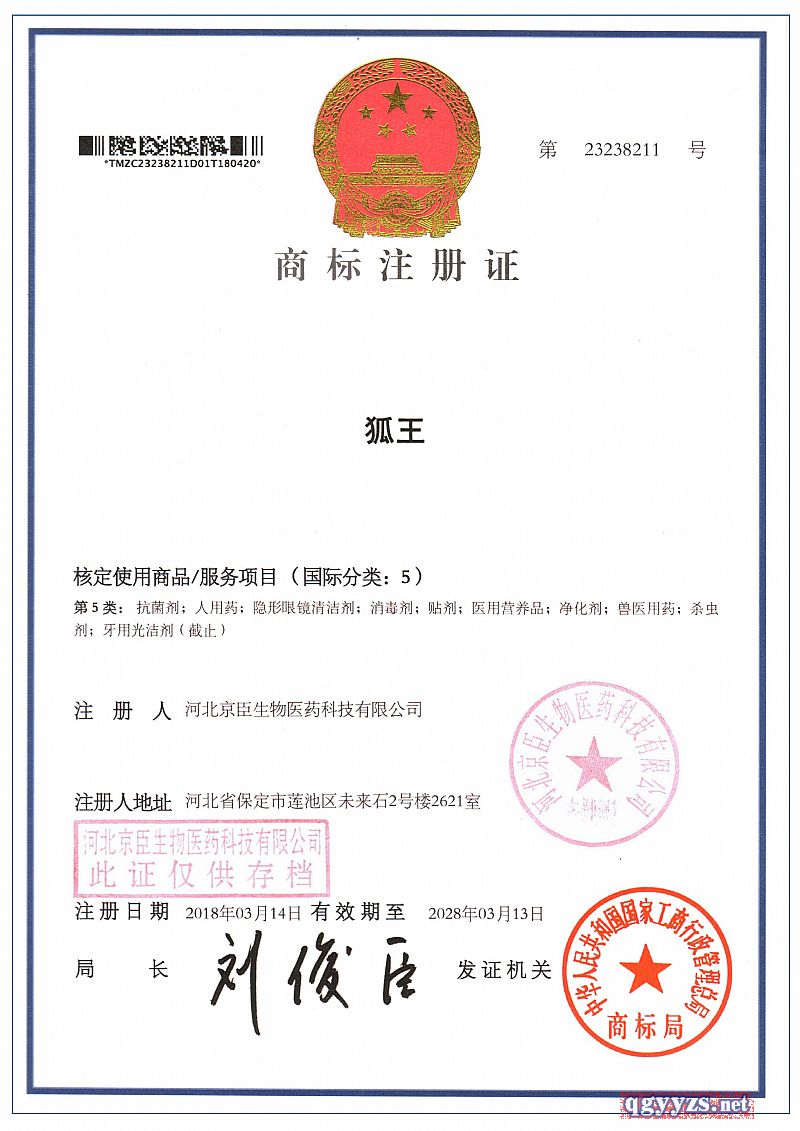 | 注冊商標(biāo) | 狐王 |