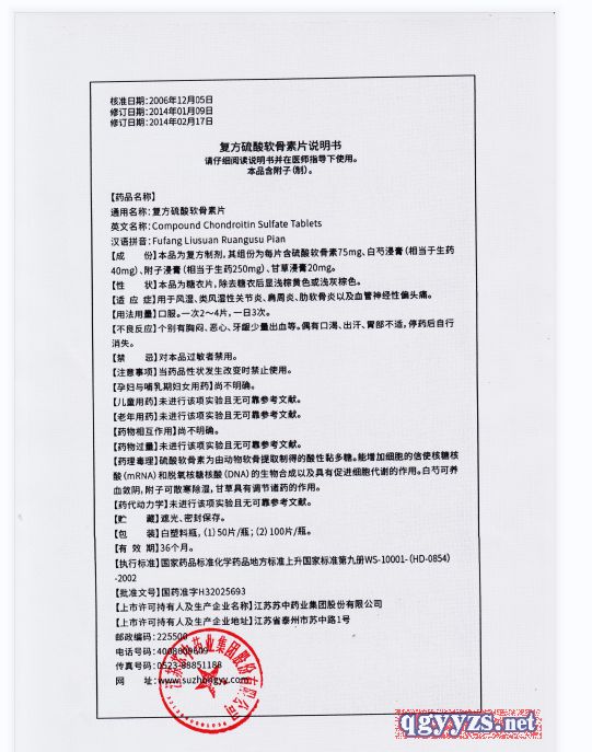 | 英文名稱 | Compound Chondroitin Sulfate Tablets |