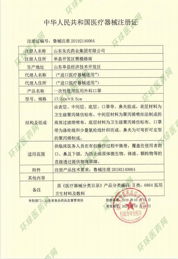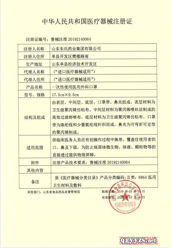 批準文號: 魯械注準20192140064 【驗證真?zhèn)?/a>】