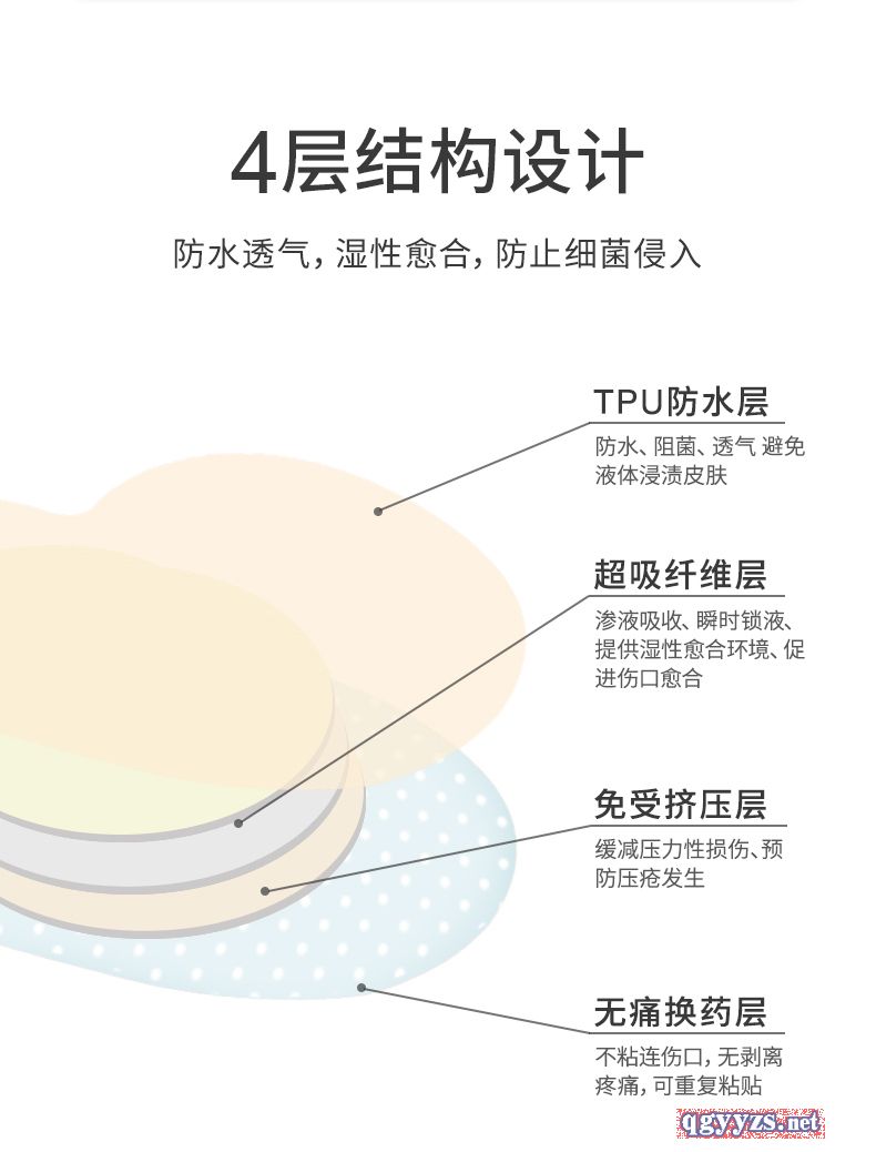 | 補(bǔ)充說明 | 高分子材料,快速吸收大量滲液 濕性環(huán)境,快速促進(jìn)肉芽生長 吸收并鎖住滲出液,保持傷口濕潤并防止周圍正常皮膚的浸漬 高透氣性敷料,可用于感染傷口 濕性環(huán)境,換藥無痛,加速傷口愈合 |
