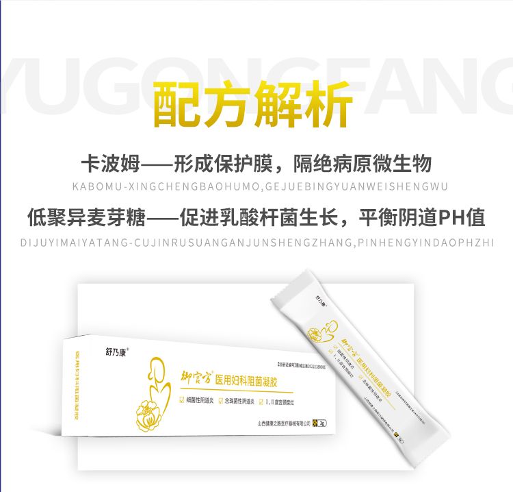 | 產(chǎn)品賣點 | 該產(chǎn)品在陰道壁形成一種保護性凝膠膜,使陰道壁與外界細菌物理隔離,從而阻止病原微生物定植。適用于細菌性陰道炎,念珠菌性陰道炎及Ⅰ、Ⅱ度宮頸糜爛的輔助治療與護理。 |