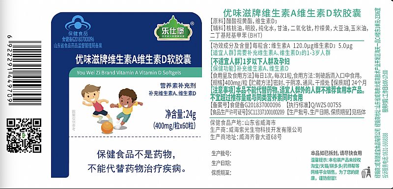| 英文名稱 | You Wei Zi Brand Vitamin A Vitamin D Softgels |