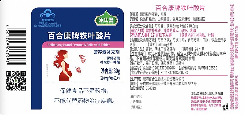 | 補(bǔ)充說(shuō)明 | 【適宜人群】:需要補(bǔ)充鐵、葉酸的成人、孕婦、乳母 |