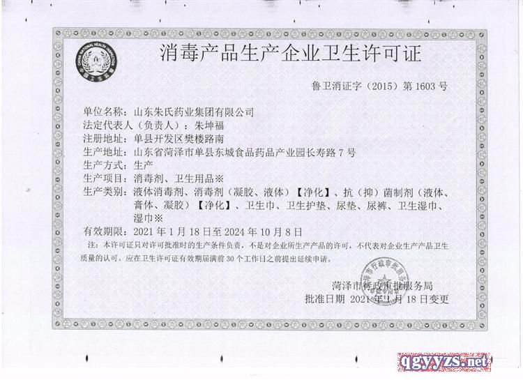 批準(zhǔn)文號: 魯衛(wèi)消證字2015第1603號