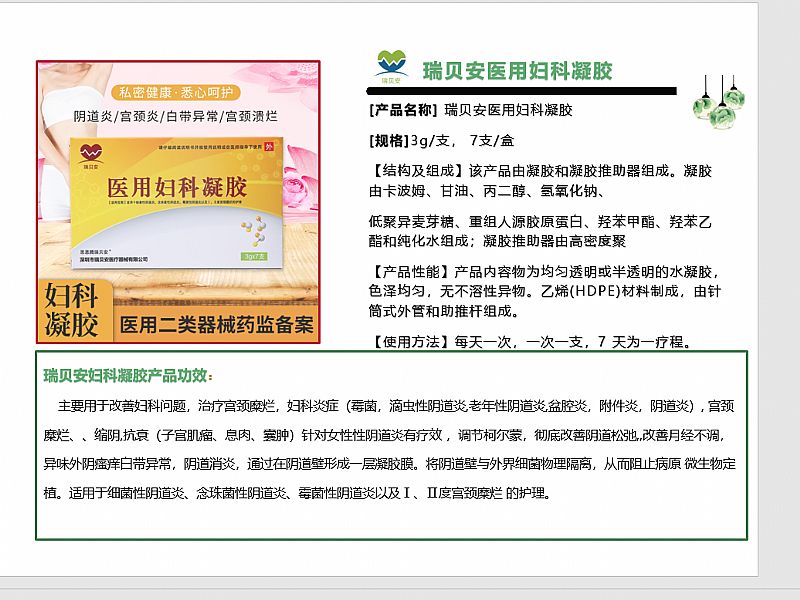 | 產(chǎn)品用途 | 用于陰道炎宮頸炎白帶異常宮頸潰爛,通過陰道壁形成凝膠膜,將陰道壁與外界細(xì)菌物理隔離,從而阻止病原微生物定值 適用于細(xì)菌性陰道炎,念珠菌陰道炎,霉菌性陰道炎,以及12度宮頸糜爛的護(hù)理 |