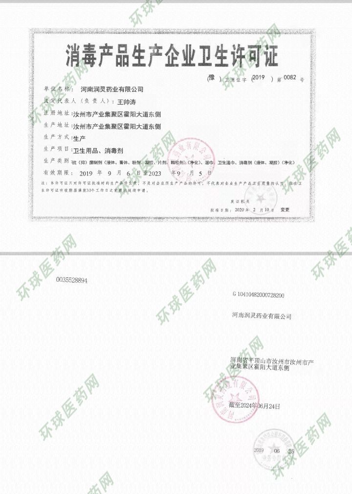 批準(zhǔn)文號: 豫衛(wèi)消證字2019第0082號