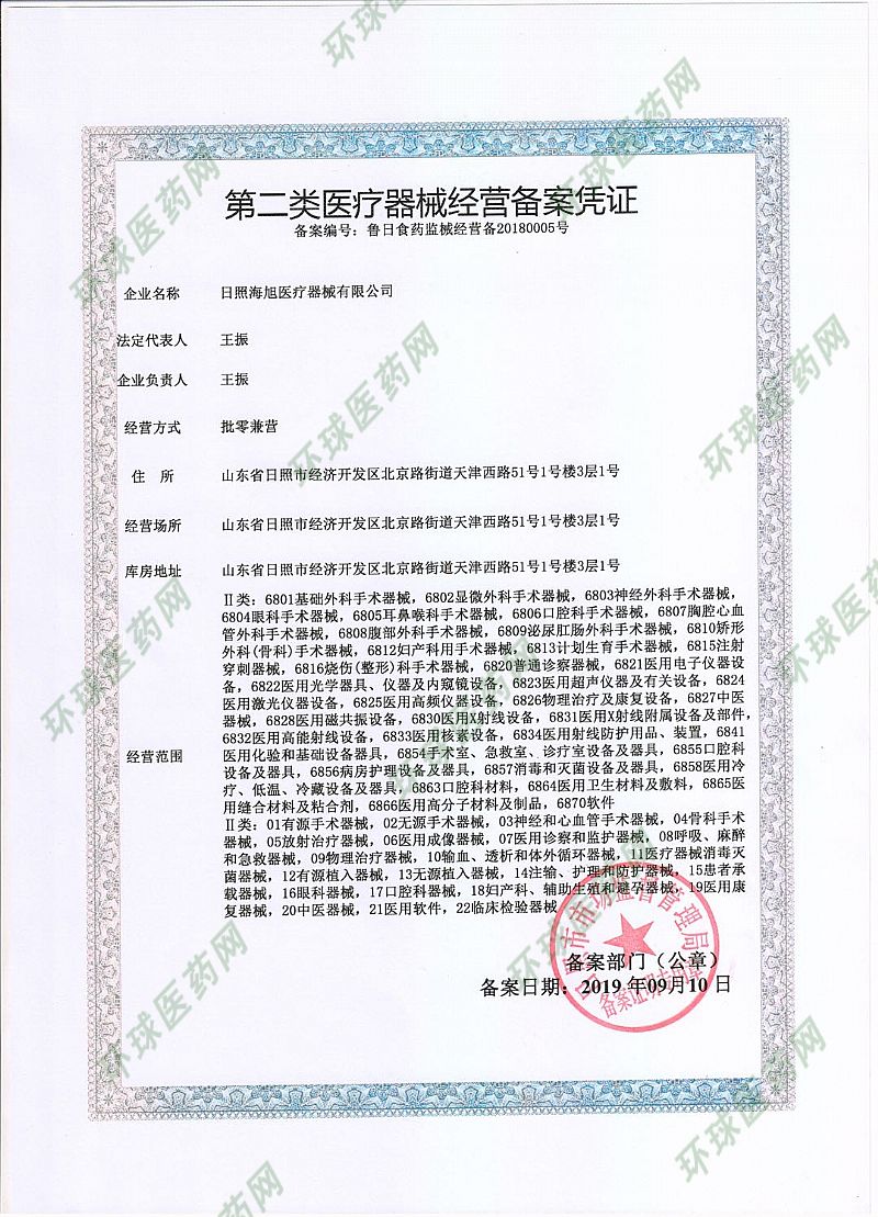 - 日照海旭醫(yī)療器械有限公司