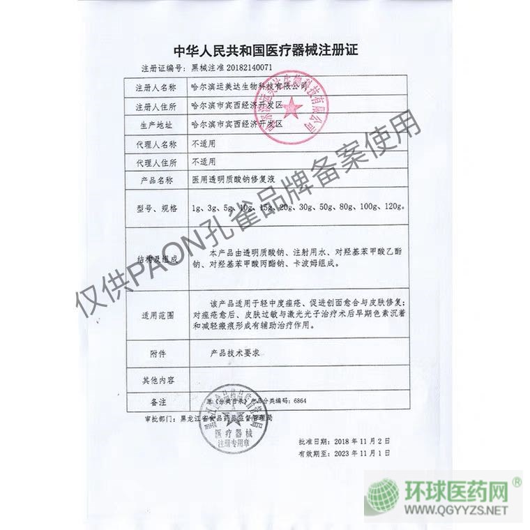 | 補(bǔ)充說明 | 1. **性:全國**產(chǎn)品,市面上**二類醫(yī)用護(hù)膚精華液 2. 適應(yīng)癥廣: 適用于輕中度痤瘡、促進(jìn)創(chuàng)面愈合與皮膚修復(fù);對(duì)痤瘡愈后、皮膚過敏與激光光子治療術(shù)后早期色素沉著和減輕瘢痕形成有輔助治療作用。 3. 可靠性高:不含激素 4. 標(biāo)桿醫(yī)院多:武漢同濟(jì)醫(yī)院、武漢市**醫(yī)院,武漢協(xié)和,湖北省中醫(yī)院,武漢中南醫(yī)院,湖南湘雅醫(yī)院、等全國多家標(biāo)桿醫(yī)院。 5. 國家發(fā)明專利:**發(fā)明專利配方【CN 108836979 A】臻選大、中、小、微分子量四重玻尿酸 與純凈無暇的醫(yī)用注射用水 6. 依從性好:***性味道,使用方便,每天日常使用 7. 政策性強(qiáng):空間好、無返款苦惱,可院內(nèi)、院外、便民藥房等多渠道銷售。 8. **推廣:價(jià)格渠道保護(hù)性強(qiáng),無淘寶、京東等電商沖擊,可作為長期維持護(hù)膚使用 |