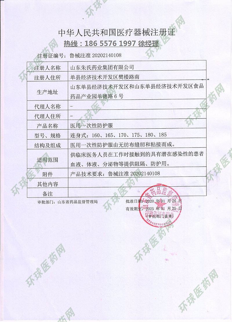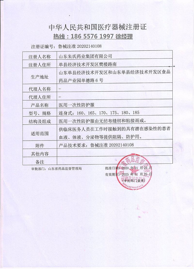 - 山東朱氏藥業(yè)集團有限公司,生產廠家,醫(yī)用一次性防護服,隔離衣,醫(yī)用外科口罩,KN95口罩,全英文包裝口罩。帶CE和FDA證書,可出口,資質齊全,食藥監(jiān)局可查。