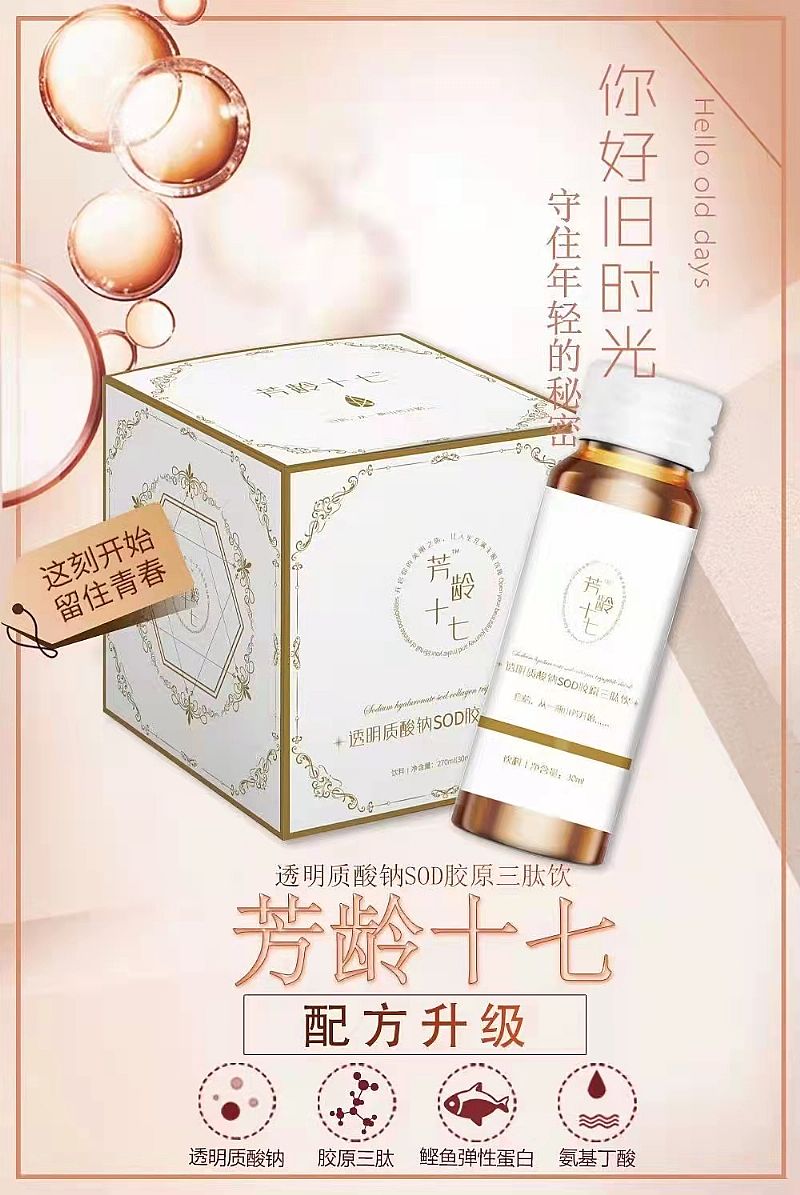 | 產(chǎn)品名稱 | 透明質(zhì)酸鈉SOD膠原三肽飲 |
