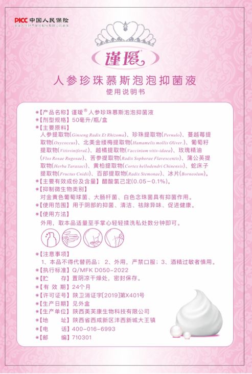 產(chǎn)品名稱(chēng): 人參珍珠慕斯泡泡抑菌液