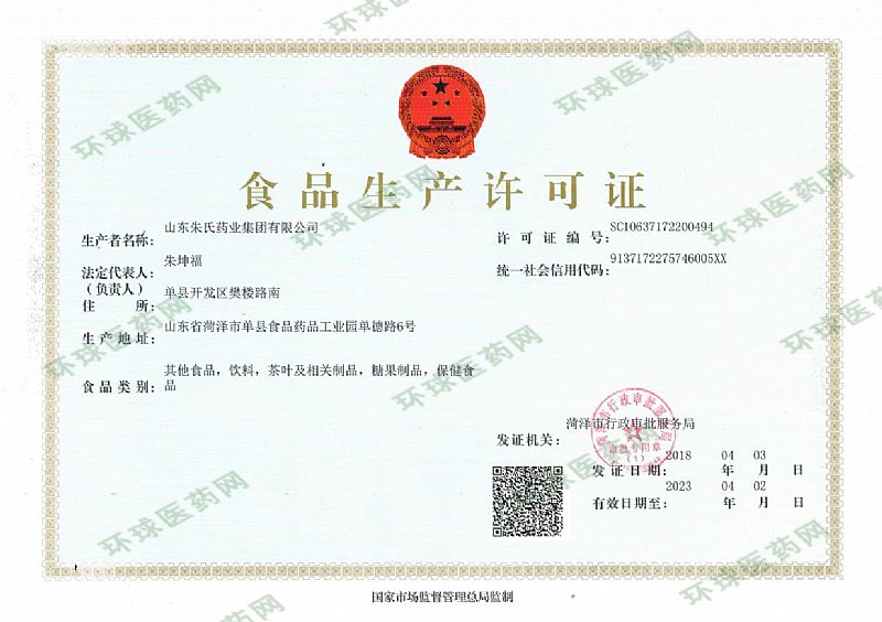 生產(chǎn)企業(yè): 山東朱氏藥業(yè)集團有限公司