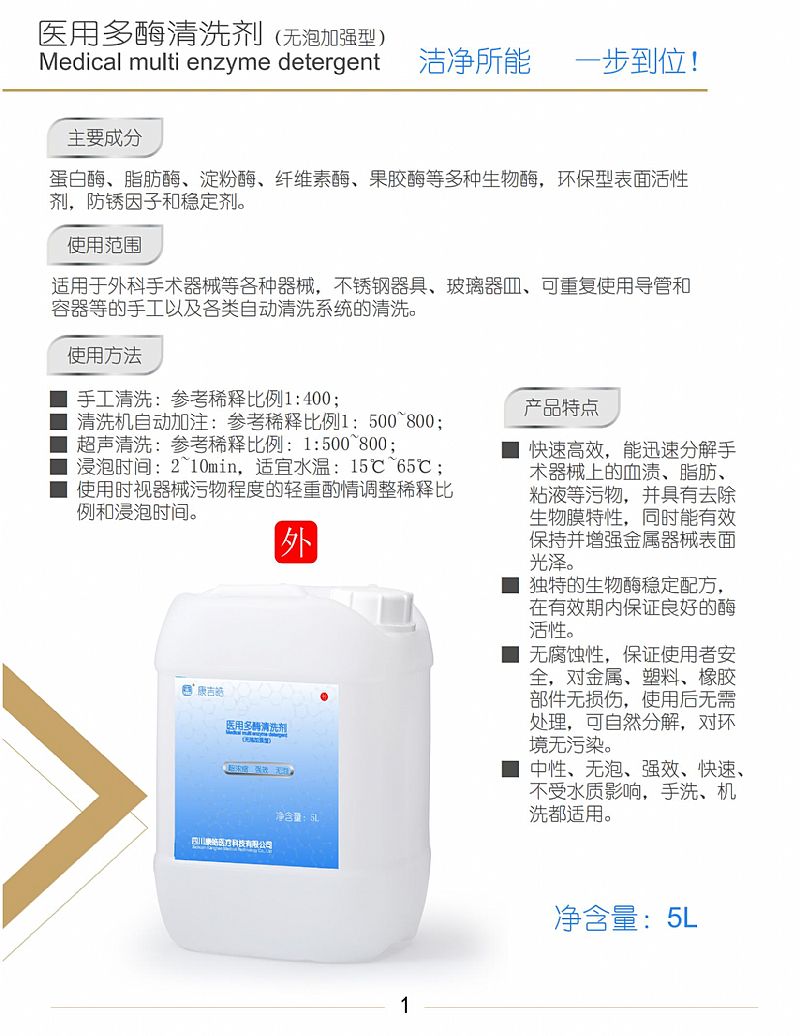 產(chǎn)品名稱: 醫(yī)用多酶清洗劑