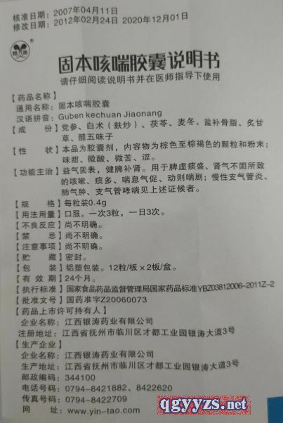 | 通用名稱(chēng) | 固本咳喘膠囊 |