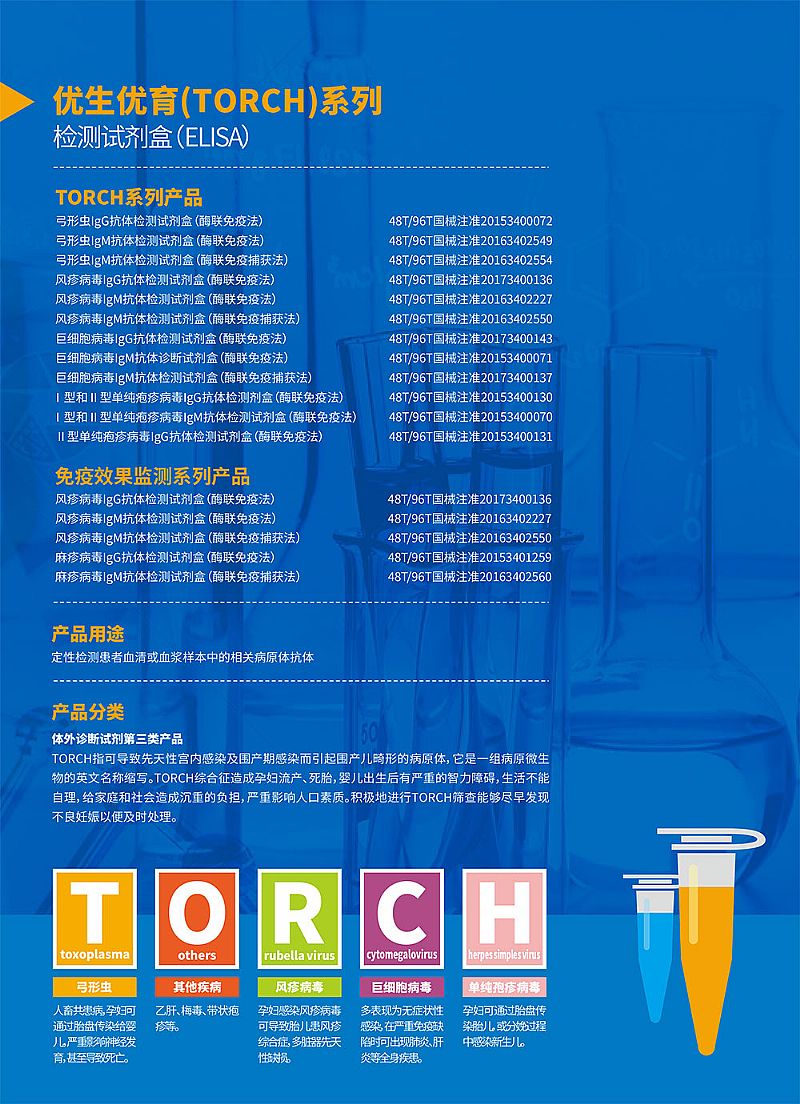 | 產(chǎn)品賣點(diǎn) | 1、可信度高兩步法ELISA避免了假陰性結(jié)果。 2、穩(wěn)定性好真空干燥封⼝,2-8℃保存12個月,批間差異小,結(jié)果重復(fù)性高。 3、特異性強(qiáng)單抗人IgM、IgG抗體,樣品中加入吸附劑消除類風(fēng)濕因子等的干擾。 4、靈敏度高可進(jìn)行常規(guī)定性檢測。 5、抗原純度病毒抗原純度高,弓形蟲蟲體純度高。 6、性價比高,有明顯價格優(yōu)勢。 7、檢測方便經(jīng)典檢測方法,上手容易,流程簡單,結(jié)果判斷清晰明了。 8、產(chǎn)品齊全全套產(chǎn)品包含弓形蟲、風(fēng)疹病毒、麻疹病毒、巨細(xì)胞病毒和單純皰疹病毒相關(guān)抗體檢測。 |