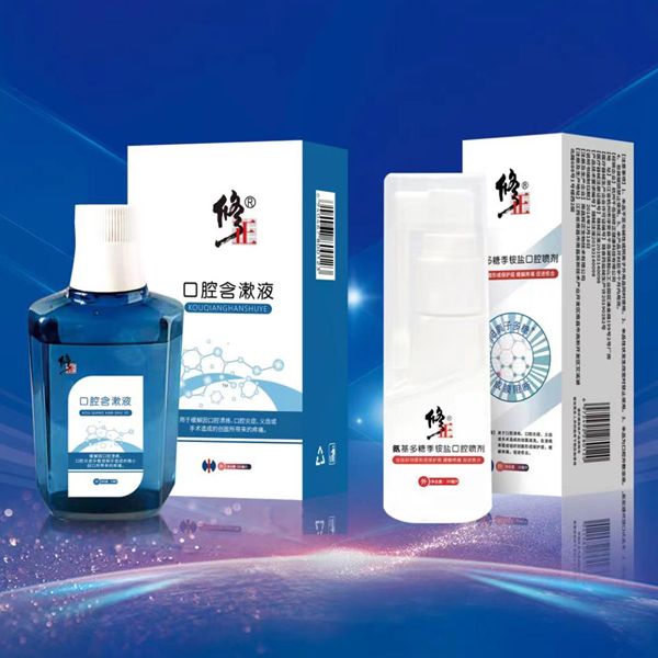 | 產(chǎn)品用途 | 口腔含漱液用于緩解因口腔潰瘍,口腔炎癥,義齒或手術(shù)造成的創(chuàng)面所帶來(lái)的疼痛。 氨基多糖季銨鹽口腔噴劑用于口腔潰瘍,口腔炎癥,義齒或手術(shù)造成的創(chuàng)面清洗,在潰瘍表面或組織創(chuàng)面形成保護(hù)層,緩解疼痛,促進(jìn)愈合。 |
