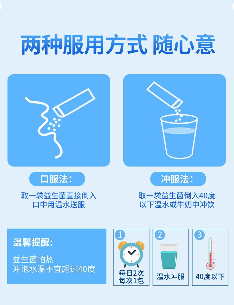 | 食用方法 | 建議3-6歲以下兒童每日1次,每次1袋;6歲以上兒童及成人每日1-2次,每次1袋。用37°C以下的溫水或牛奶沖調(diào)后飲用,也可加入輔食中沖調(diào)或者拆袋直接食用 |