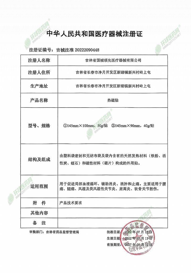 生產(chǎn)企業(yè): 吉林省國械領(lǐng)先醫(yī)療器械有限公司