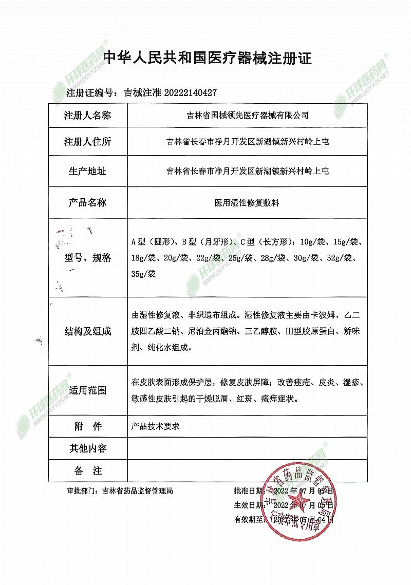 | 產(chǎn)品名稱 | 醫(yī)用濕性修復(fù)敷料 |