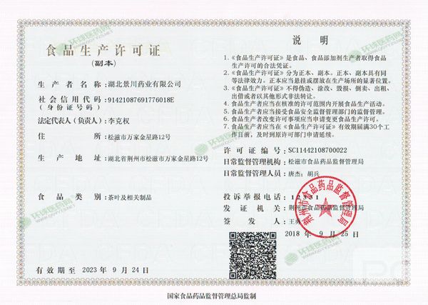 生產(chǎn)企業(yè): 湖北景川藥業(yè)有限公司