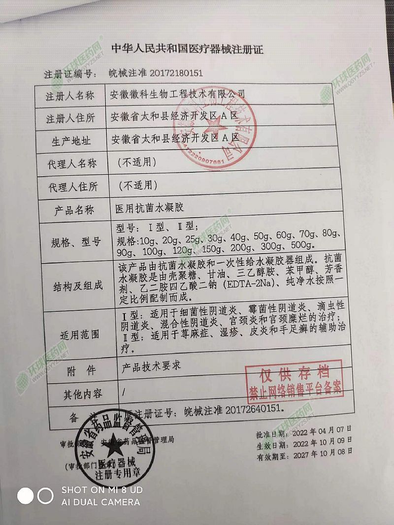 | 主要成分 | 該產(chǎn)品由抗菌水凝膠和一次性給水凝膠器組成。抗蒙水凝膠是由殼聚糖、甘油、三乙醇胺、苯甲醇、芳香劑、乙二胺四乙酸二(EDTA-2Na)、純凈水按照一定比例配制而成。 |