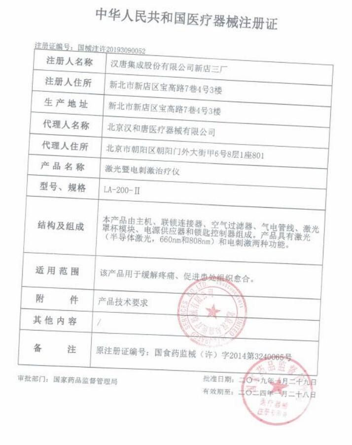 | 英文名稱 | Han-Tang laser and electrical stimulation therapeutic instrument LA-200-II |