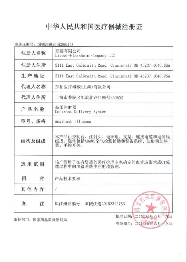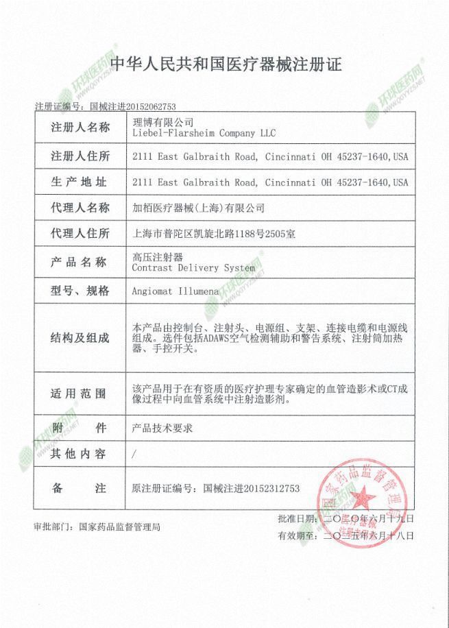 | 產(chǎn)品用途 | 該產(chǎn)品用于在有資質(zhì)的醫(yī)療護理專家確定的血管造影術(shù)或CT成像過程中向血管系統(tǒng)中注射造影劑。 |