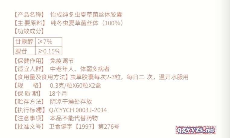 | 補(bǔ)充說(shuō)明 | 國(guó)家食品藥品監(jiān)督管理局官網(wǎng)可查帶“純”字蟲(chóng)草產(chǎn)品 |