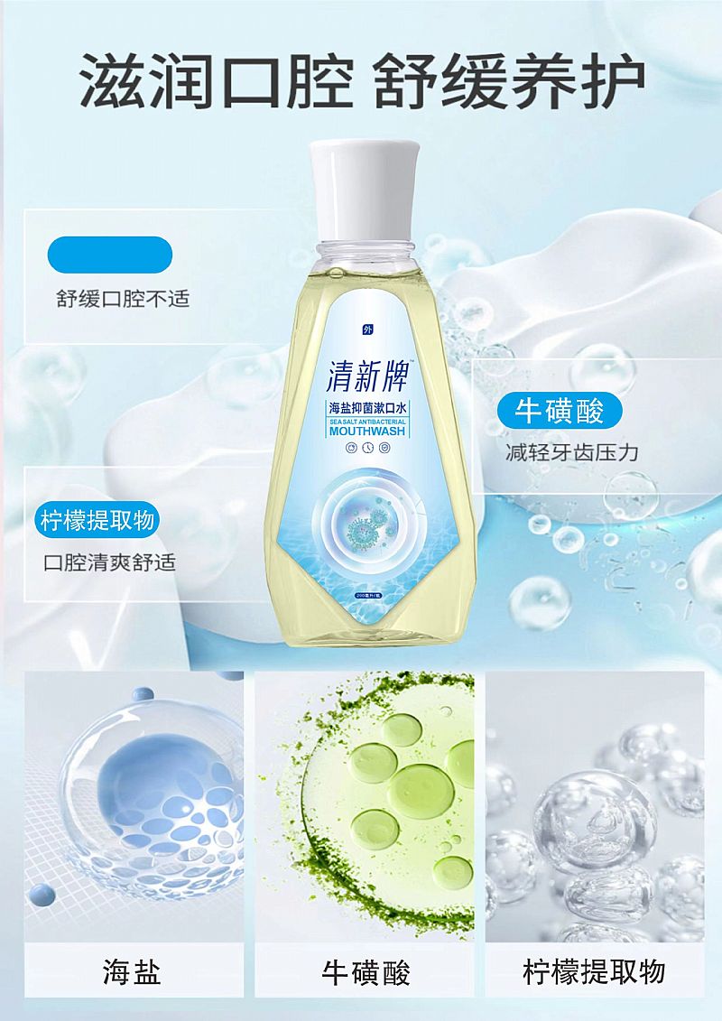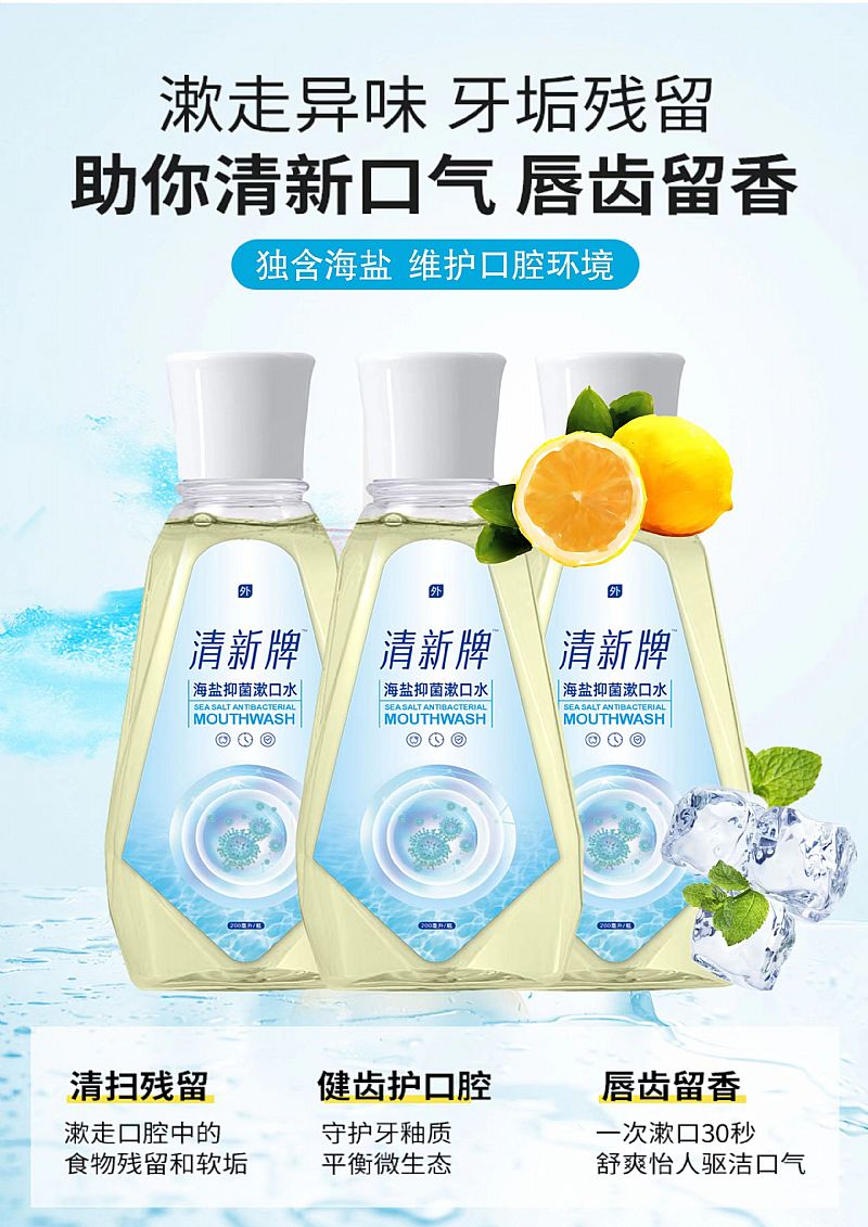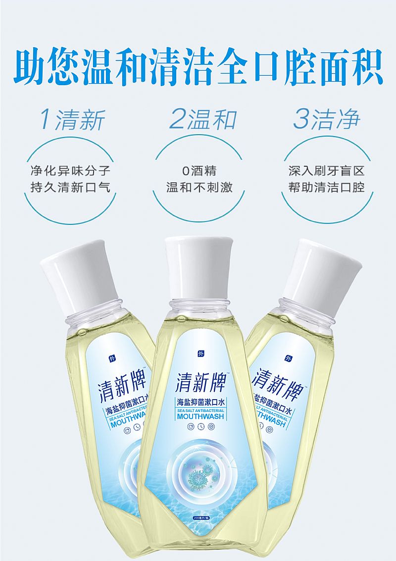 | 產(chǎn)品名稱 | 清新牌海鹽抑菌漱口水 |