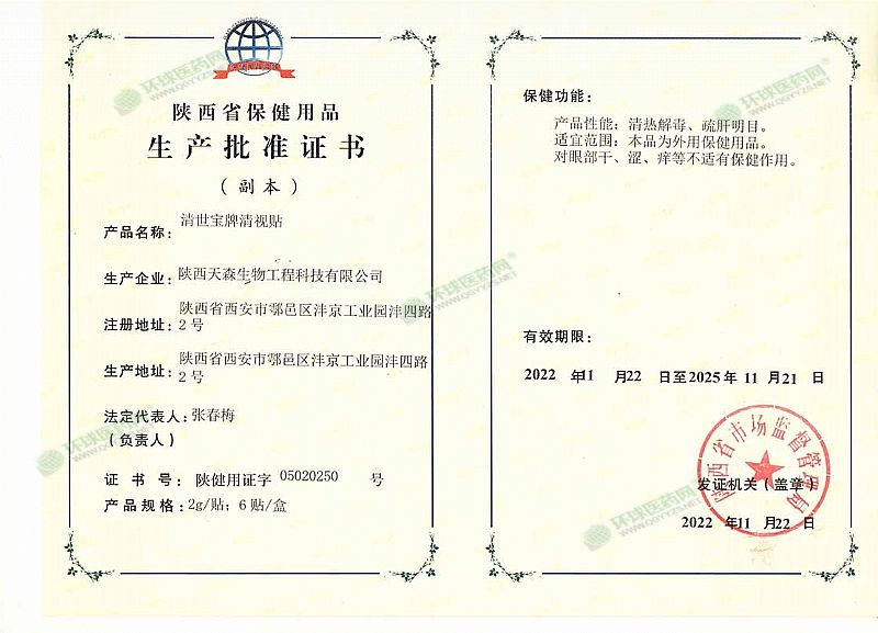 批準文號: 陜健用證字05020250號 【驗證真?zhèn)?/a>】