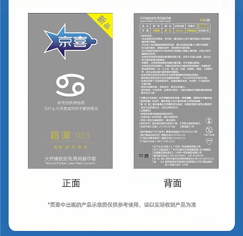 4,京喜星座避孕套采用了GB/T7544-2019的新標(biāo)準(zhǔn),新國(guó)標(biāo)對(duì)產(chǎn)品的生產(chǎn)檢驗(yàn)等全過(guò)程都有了更高的要求。消費(fèi)者看到避孕套產(chǎn)品包裝上是:天然橡膠膠乳男用避孕套(原:天然乳膠橡膠避孕套),就證明這個(gè)產(chǎn)品采用的是新的國(guó)標(biāo)。
