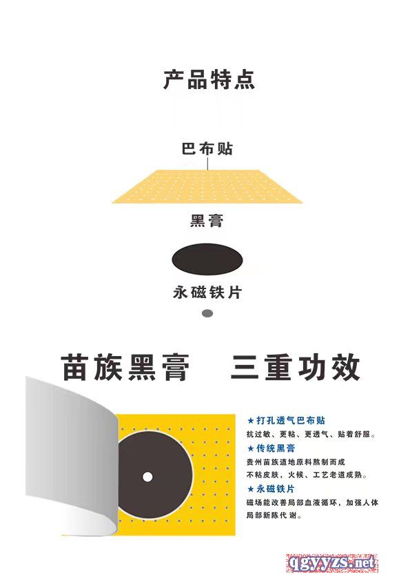 | 產(chǎn)品賣點 | 苗族黑膏、三重功效(巴布貼+黑膏+磁療)、專貼專用、可刷醫(yī)保?劁N;不掛網(wǎng); |