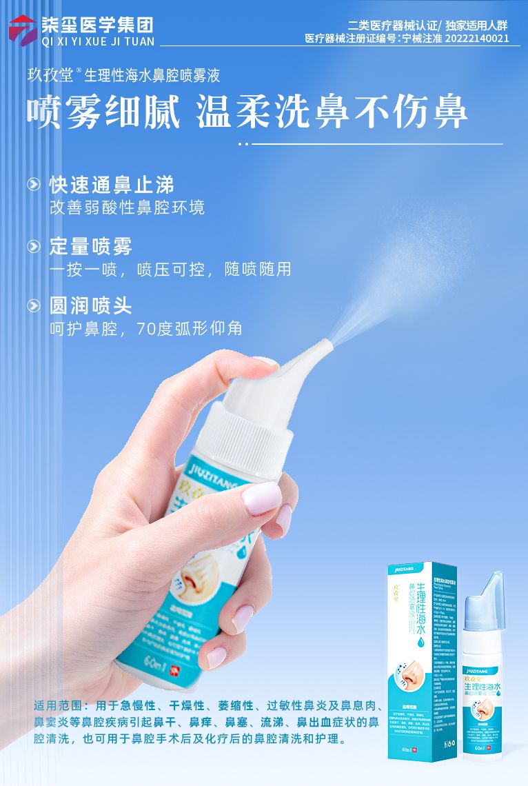 | 補充說明 | 1.用于急慢性、干燥性、萎縮性、過敏性鼻炎及鼻息肉、鼻竇炎等鼻腔疾病引起鼻干、鼻癢、鼻塞、流涕、鼻出血癥狀的鼻腔清洗 2.鼻腔手術后及化療后的鼻腔清洗和護理 3.換季****,噴霧輕容細膩不嗆鼻,小孩老人通用 4.雙層化鋁罐/密封性好,液體不受外界污染,方便攜帶,隨時滋潤清潔鼻腔 5.二類醫(yī)療器械,醫(yī)用品質呵護鼻腔 |