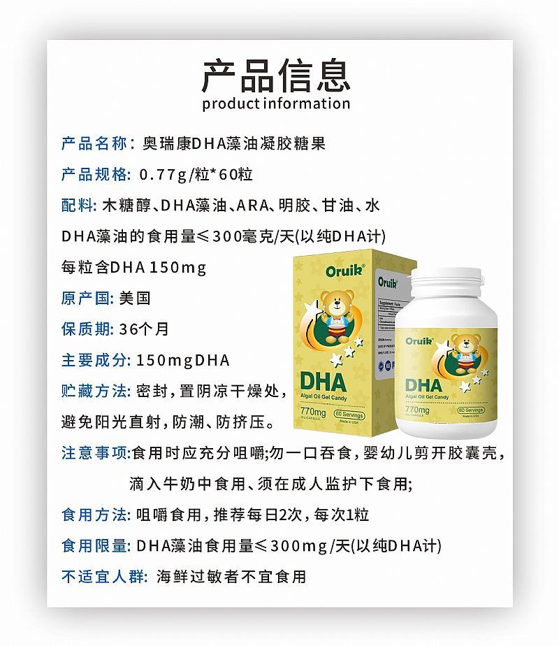 奧瑞康DHA藻油(美國原裝進口)全國招商