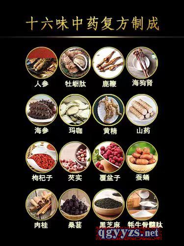 | 主要成分 | 人參(人工種植五年以下)提取物,麥芽糖醇,牡蠣肽,鹿鞭(養(yǎng)殖梅花鹿副產(chǎn)品)提取物,海狗腎提取物,海參提取物,瑪咖提取物,黃靜提取物,山藥提取物,枸杞子提取物,芡實(shí)提取物,覆盆子提取物,蠶蛹提取物,肉桂提取物,桑葚提取物,黑芝麻提取物,耗牛骨髓肽,麥芽糊精,食品添加劑(硬脂酸鎂) |