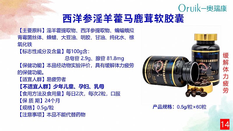 產(chǎn)品名稱: 奧瑞康西洋參淫羊藿馬鹿茸軟膠囊